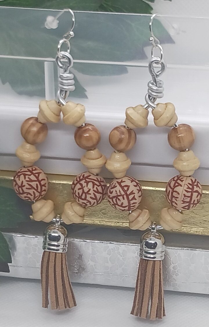 These Wood Beads with Leather Swage Earrings are a perfect blend of natural materials and artisanal craftsmanship. Carefully handcrafted with precision, they combine the earthy charm of wood beads with the sleek texture of leather swage, making them a versatile accessory that complements a range of outfits seamlessly. Whether you’re dressing up for a special occasion or seeking everyday elegance, these earrings are your go-to solution for adding a touch of sophistication to your style.
